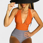 Avasta meie uimastav ujumiskostüüm, mis sulandab retro võlu ja tänapäeva rafineerituse. Sügava kaelusega ja kõrge vöökohtaga disain rõhutab naise siluetti, pakkudes samas tuge ja mugavust.
