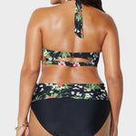 See lilleline bikiin toob sinu suvepäevadesse eksootilise ja rafineeritud puudutuse. Halter-kaelusega top pakub suurepärast tuge ja kujundab rinna loomulikult, samas kui kõrge vöökohaga aluspüksid drapeeringu detailidega aitavad mugavalt ja enesekindlalt siluetti määratleda.
