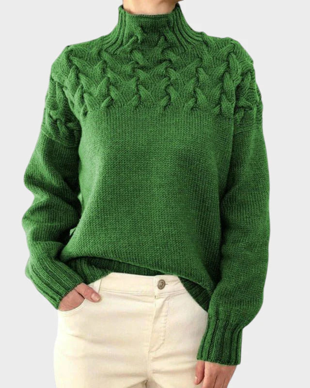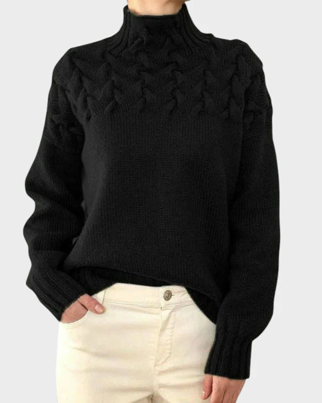 Elegantne disain: Klassikaline kõrge kaelus ja keerukad kudumise detailid loovad ajatu välimuse.