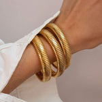 Ribaga Käevõru on ideaalne viis, et muuta iga riietus eriliseks! Tõsta oma randme riietust selle peenelt 14k kullaga kaetud käevõruga, mis omab ainulaadset ribadega disaini, lisades tekstuuri ja elegantsi igasse komplekti.