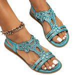 Need türkiissinised sandaalid kaunistavad sinu jalgu kivikeste ja detailse lillemustriga, tuues elegantsi sooja ilmaga. Nende sädemeviiimistlus lisab glamuurset puudutust suvistele riietusele, sobides ideaalselt kergete kleitide, seelikute või lühikeste pükste juurde.