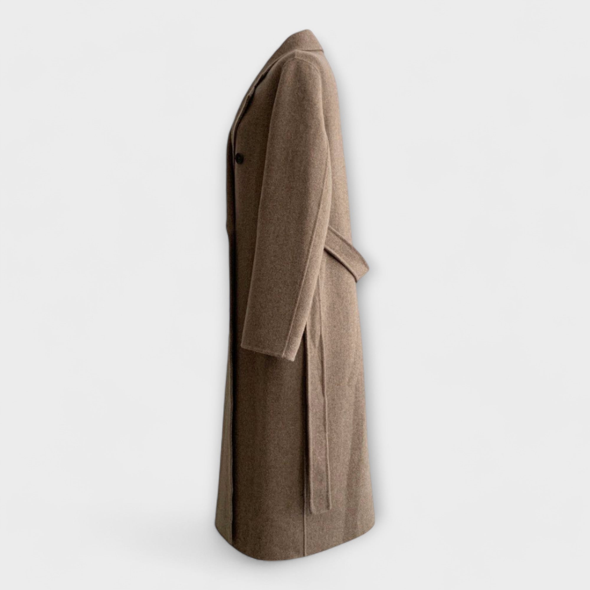 Avasta meie pikk mantel, mis ühendab klassikalise stiili ja vastupandamatu mugavuse. Sofistikeeritud krae, elegantsed nööbid ja praktiline vöö loovad rafineeritud silueti, hoides sind soojas külmadel päevadel.