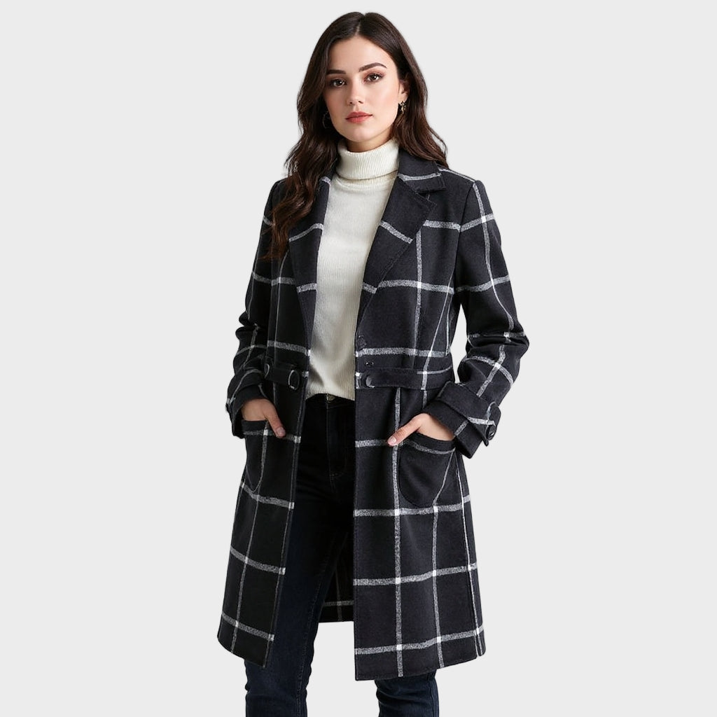 Selle rafineeritud ruuduline muster ja krae lisavad õrnalt luksust — seda “vaevata kokku pandud” enesekindlust, mida iga naine väärib.
