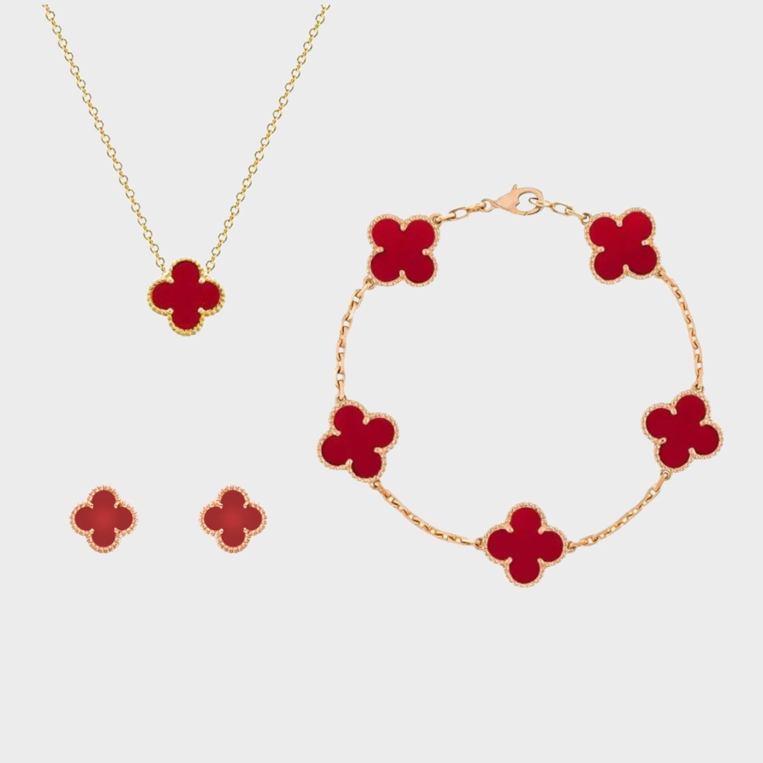 Meie neli lehte ristikuga ehtekomplekt, mis sisaldab kaelakeed, käevõru ja kõrvarõngaid, on ideaalne kombinatsioon rafineeritust ja võlu. Peenelt kujundatud ristikud sümboliseerivad õnne ja ilu, lisades teie välimusele tähendusrikka puudutuse.
