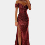Astuge tähelepanu keskpunkti Arieliga—hämmastav merineitsi kleit, mis on loodud särama elegantselt ja dramaatiliselt. Selle off-shoulder drapeeritud dekoltee, vooderdatud siluett ja kõrge lõhik reies teevad sellest täispikkuse silueti, mis on ideaalne ametlikeks õhtuteks, galaüritusteks ja unustamatuteks sisenemisteks.