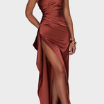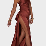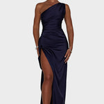 Selle asümmeetriline ühe õla disain koos pehme drapeeringuga on ühendatud väljapaistva lõhiku ja reie külge, et lisada sensuaalsust ja rafineeritud ilmet. Ideaalne eriliseks õhtuks, kus visuaalne mõju on hädavajalik.