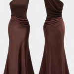 Aegumatu elegantsi rõhutamiseks loodud, see pikk plisseeritud kleit ühendab igas liikumises rafineerituse ja kohaloleku. Ühe õlavarrega lõige lisab modernsuse ja peenuse, samas kui õrnad voldid voolavad sujuvalt, et kujundada muljetavaldav ja naiselik siluett. Välimus, mis on mõeldud hetkedele, mis nõuavad eristumist ja enesekindlust.