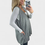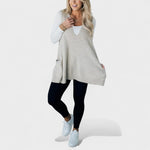 Elegantne ja soe, see vest on meie klientide lemmik! Voolav ja pehme disain on ideaalne kihistamiseks, pakkudes pika pikkuse ja A-lõikega, mis loob meelitava silueti. Kerged sviitri materjalid tagavad soojust ilma kaalu lisamata, samas kui segatud värv ja ribana detailid lisavad stiili.
