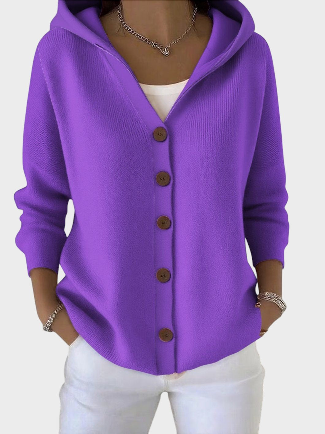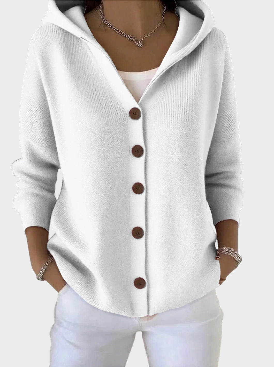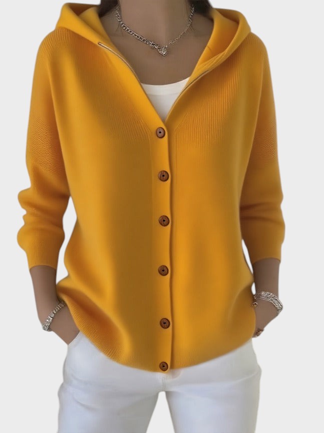 Kudumitega jakkena Zora on valmistatud ülipehmest kudumismaterjalist, mis hoiab sooja ilma raskuseta. Selle lõtv lõige sobib ideaalselt T-särgi või bluusiga kandmiseks, samas kui kapuuts loob mõnusa kookoniefekti – ideaalne külmemate hetkede jaoks.