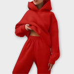 Avastage täiuslik mugavuse ja stiili kombinatsioon meie Urban Comfort Setiga! See komplekt, mis koosneb ülisuurusest kapuutsiga särgist ja kõrge vöökohaga püksidest, on ideaalne lõõgastumiseks, reisimiseks või igapäevaseks street look'iks.