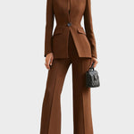 Elina Kostüüm kehastab rafineeritud enesekindlust — kaunilt struktureeritud blazer ja sobivad püksid, mis loovad võimu ja graatsia silueti. Valmistatud nii, et see rõhutab iga kõverat, see kostüüm liigub vaevata koos sinuga koosolekute ruumist õhtusöökidele, pakkudes mugavust ja elegantsi võrdselt.