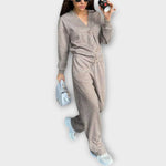 Avasta meie ideaalne komplekt, mis ühendab stiili ja praktilisuse ühes tükis. Sirge lõikega püksid ja suure nööbiga mantel loovad klassikalise välimuse, mis sobib igaks olukorraks – alates tööst kuni väljasõitudeni.
