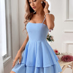Alice - Seljatu mini kleit lipsuga õlapaeladel ja kihilise seelikuga