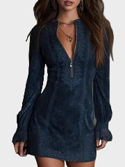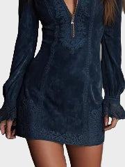 Liisa – Sinine Samet Mini Kleit Lõngaga